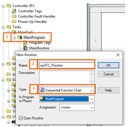 Creating a Sequential Function Chart routine is done in the same fashion as creating any other type of routine.