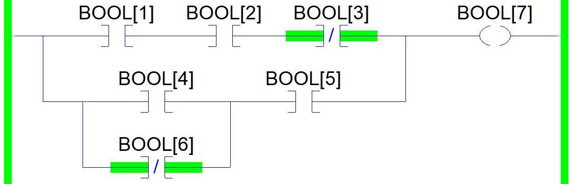 BOOL[7] [:=] (BOOL[1] ANDÂ BOOL[2] AND NOT(BOOL[3])) OR ((BOOL[4] ORÂ NOT(BOOL[6])) ANDÂ BOOL[5])