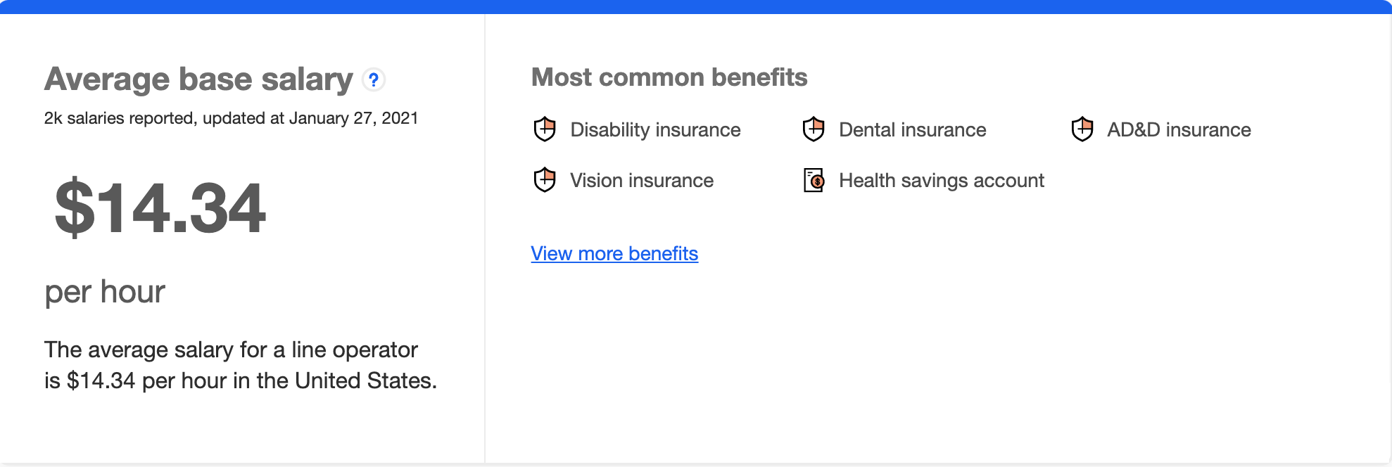 The barrier of entry into manufacturing as an operator is low. It's possible to land an operator position after completing high-school education. For this reason, the salary of an operator is typically in the lower range.